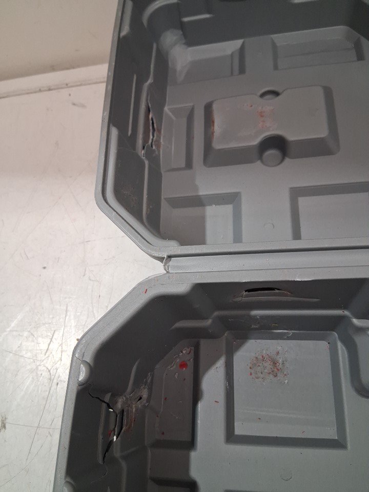 carrying case has a few small cracks in it, item itself has a few shipping scuffs but still functions