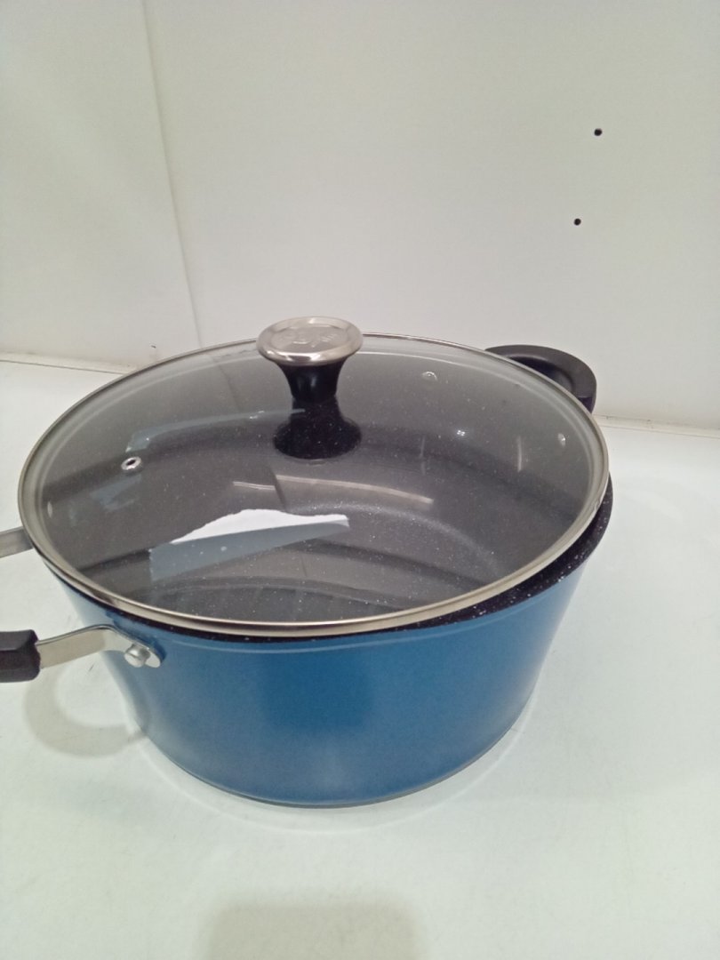 Item appears new but part of the rim on the pot has been bent during transport. Lid still sits on top but has a small gap. Please see photos.