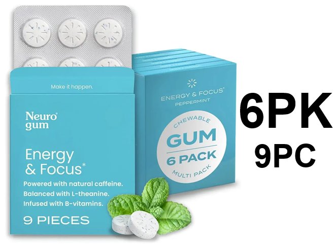 6pk (pc) neuro gum energy and focus peppermint gum - 54 TOTAL PIECES
