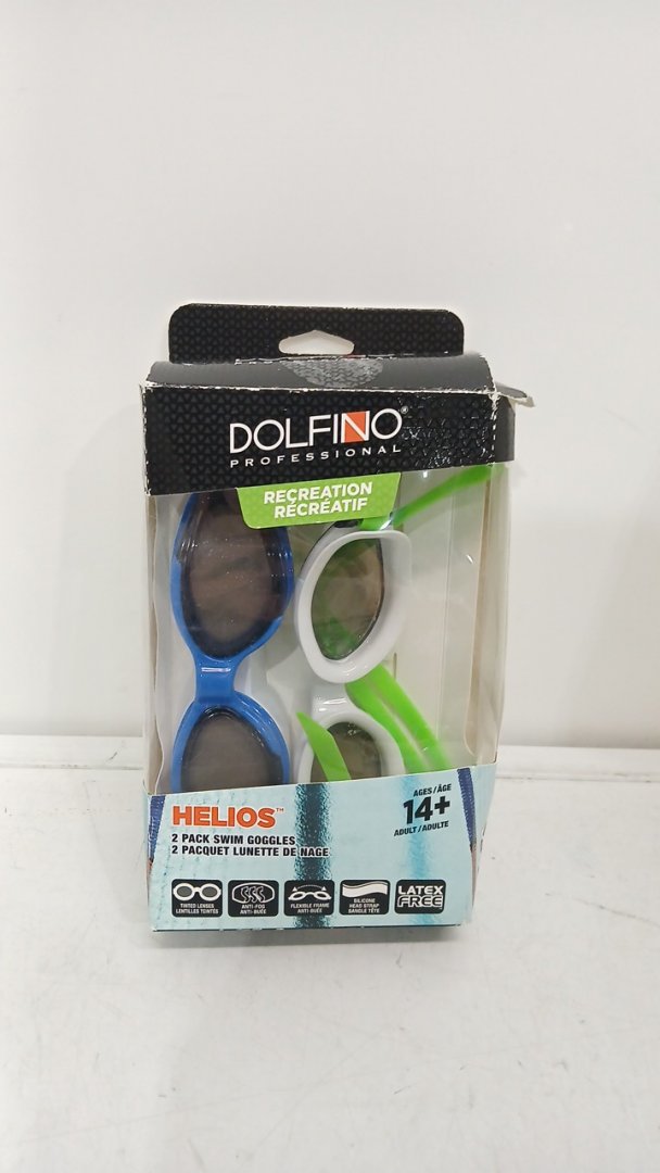 2pk unisex adults dolfino helios recreational swimming goggles -osfm - blue/green