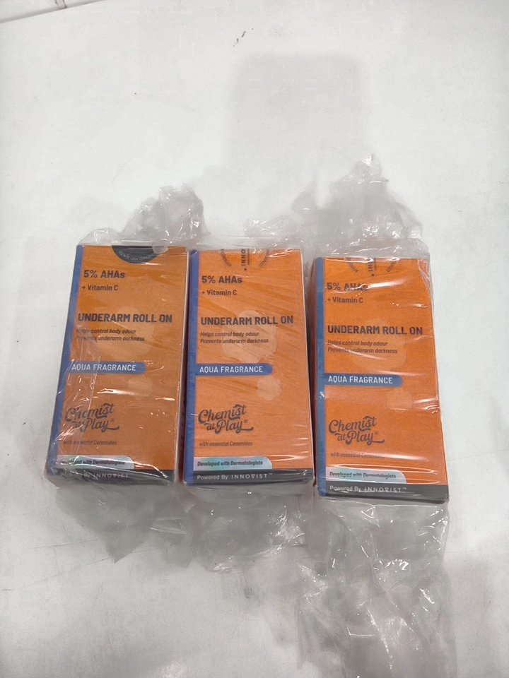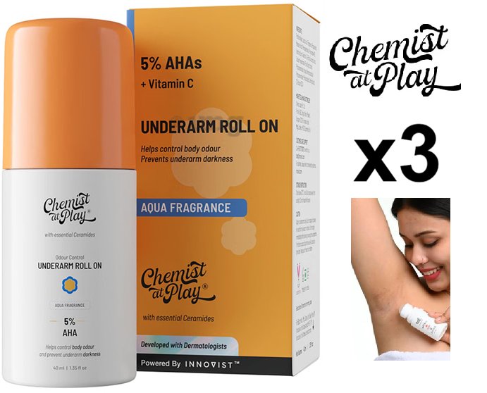 3 chemist at play 5% ahas roll on underarm deodorant - aqua fragrance - 40ml/each