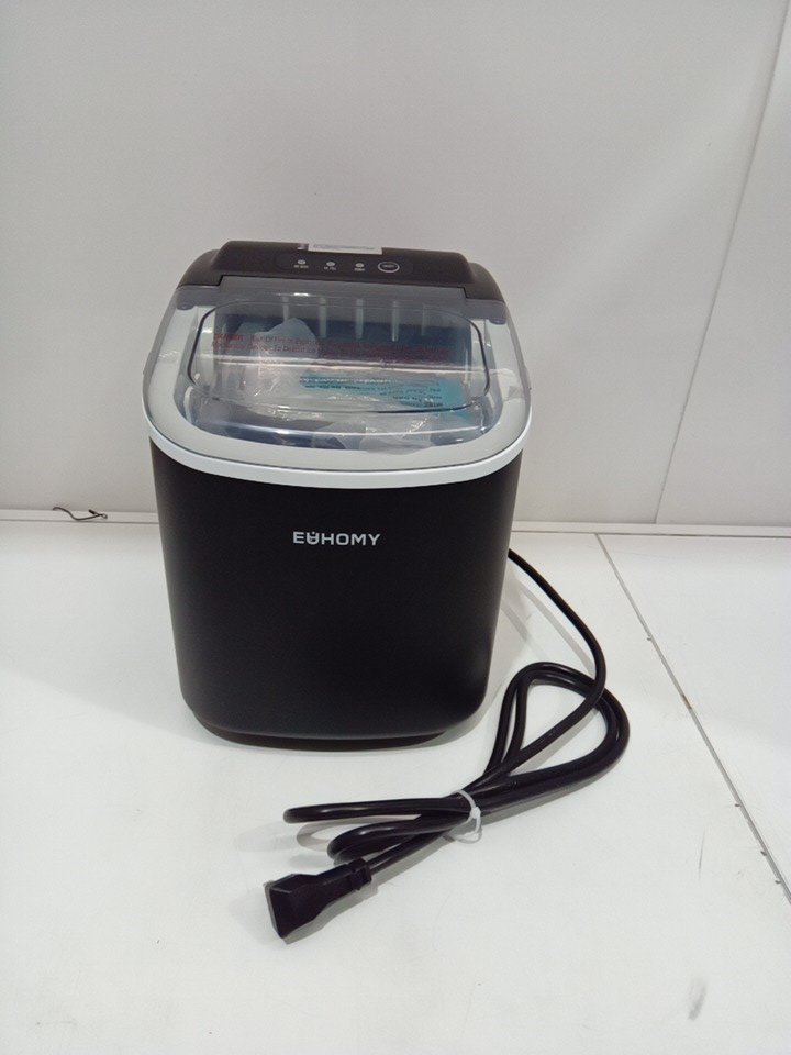 EUHOMY Countertop Ice Maker Machine with Handle, Basket and Scoop - MAKES 26LBS Per Day - BLACK - (MODEL:IM001-Bbl-CAEH)