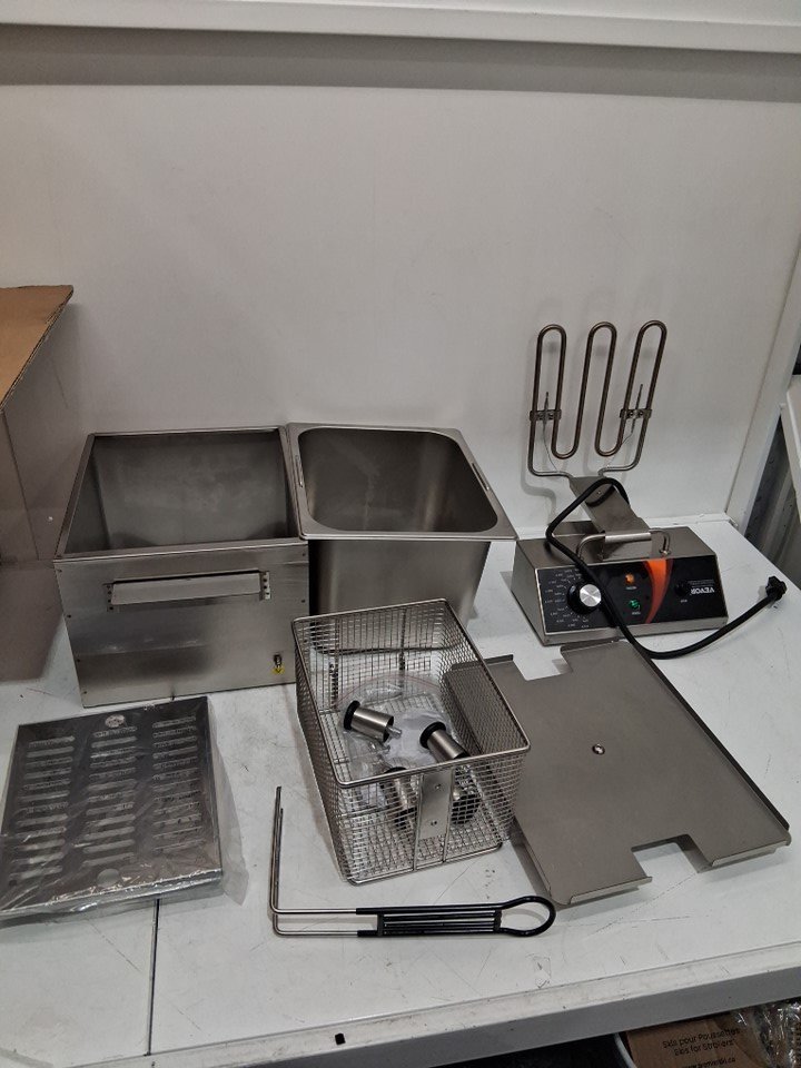 Tested for power only. Item shows signs of previous use as there is oil residue, light burn and food marks and some scuffing, see photos for reference.