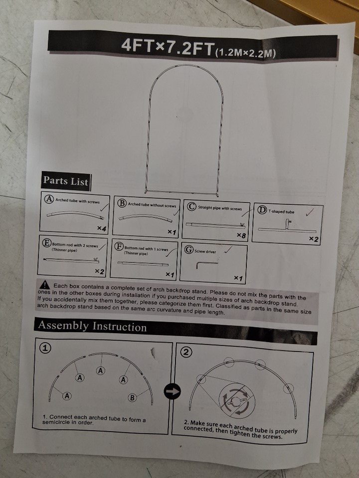 wokceer balloon arch - 6ft x 2.6ft - gold (model: f-gm-7.2ftx4ft)