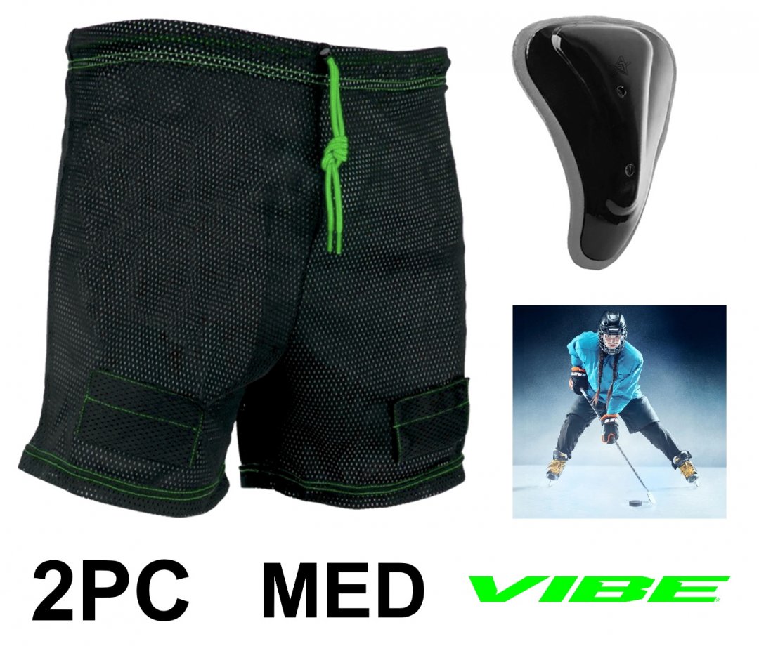 2PC Youth Vibe Hockey Jill Mesh Shorts with Protective Pad - Medium - Green/Black