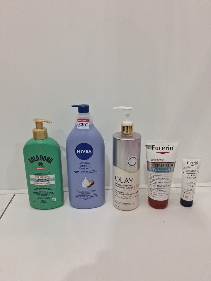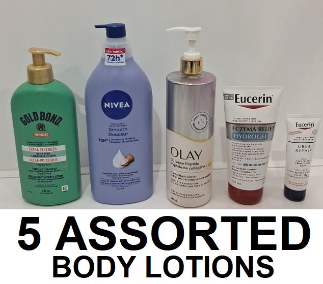 5 assorted body lotions - NIVEA, GOLD BOND, OLAY & EUCERIN