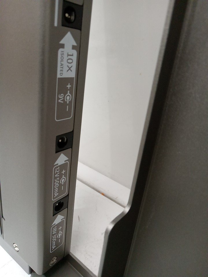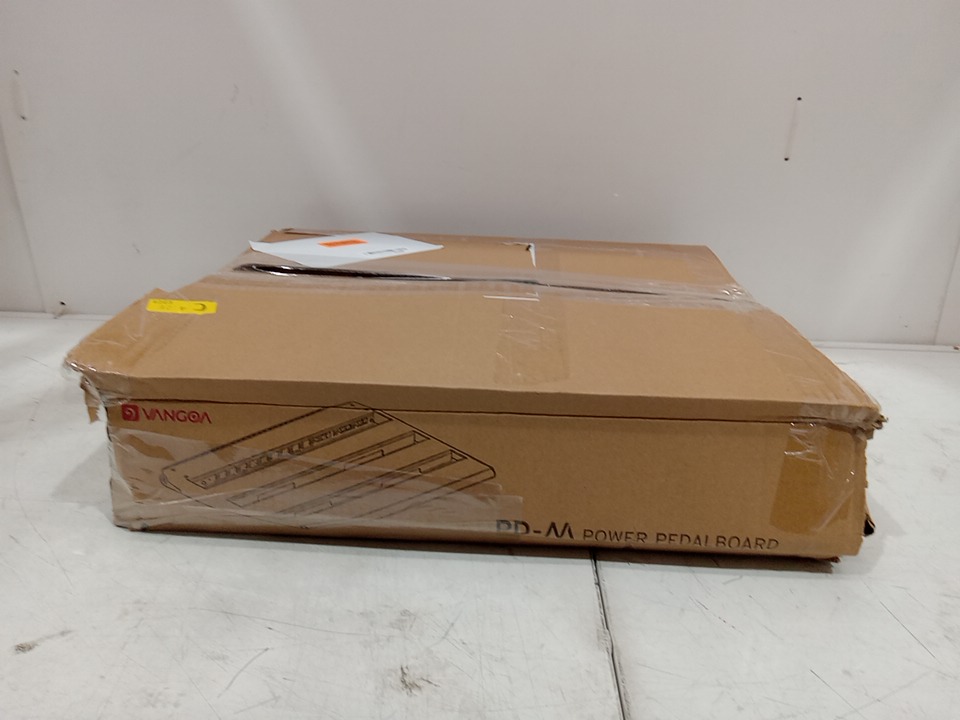 Please note that the product arrived without the power adapter (18V=2.5A), the power adapter can easily be replaced. There are scratch marks on the top and base of the pedal board due to previous use. Can't test as the product arrived without the power adapter. (Please see photos)