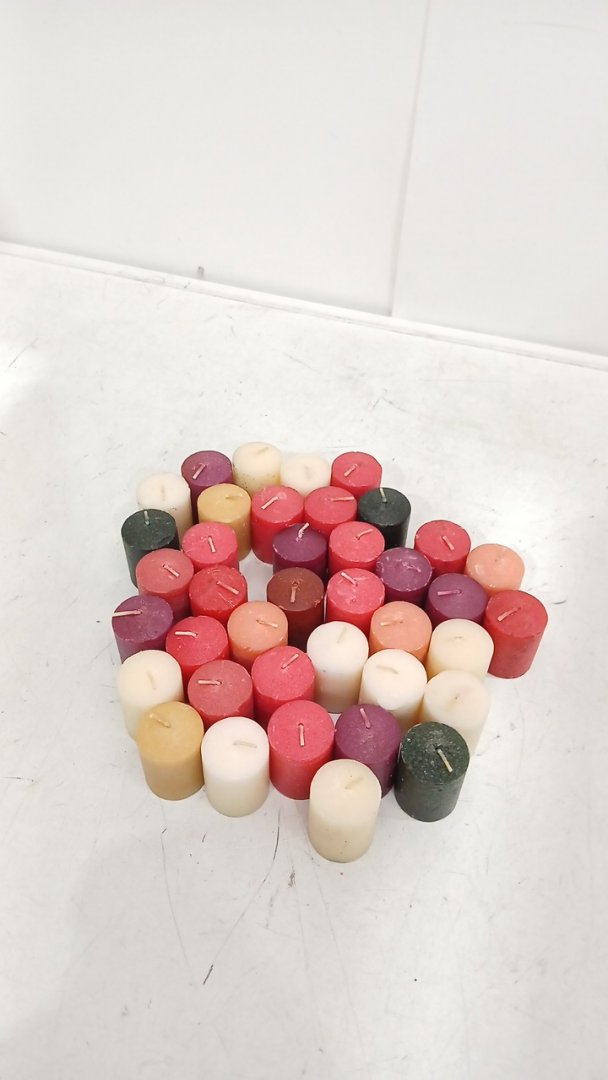 39 ASSORTED TEA LIGHT CANDLES - 2" EACH - ASSORTED COLORS