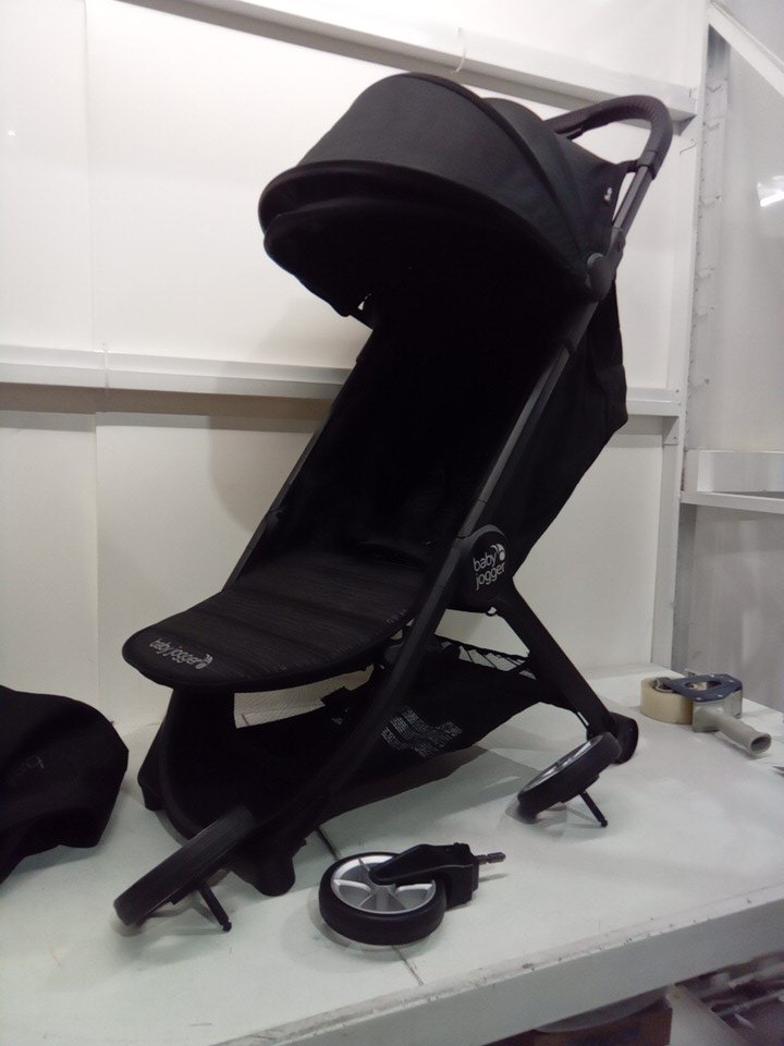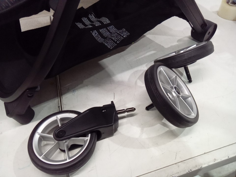we are missing one of the wheels, and there is minor staining in the stroller. see photos please.