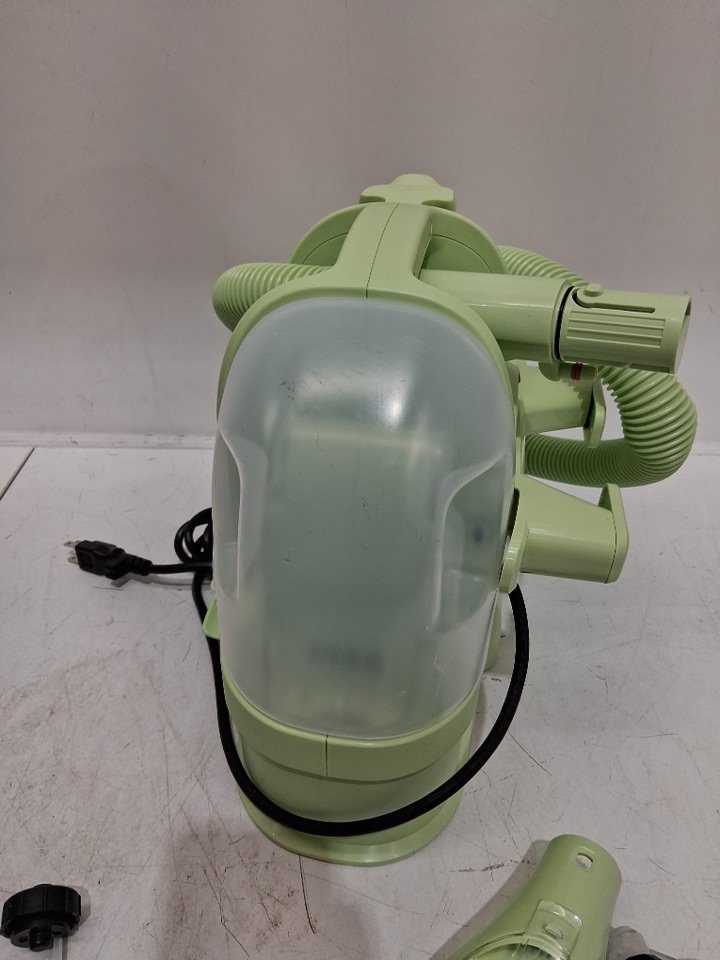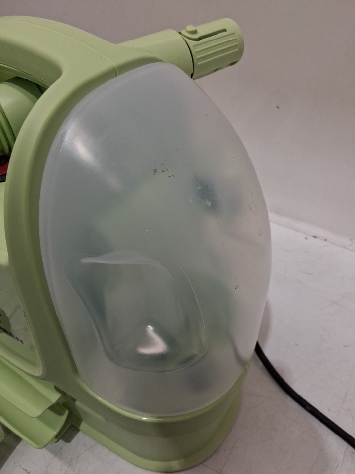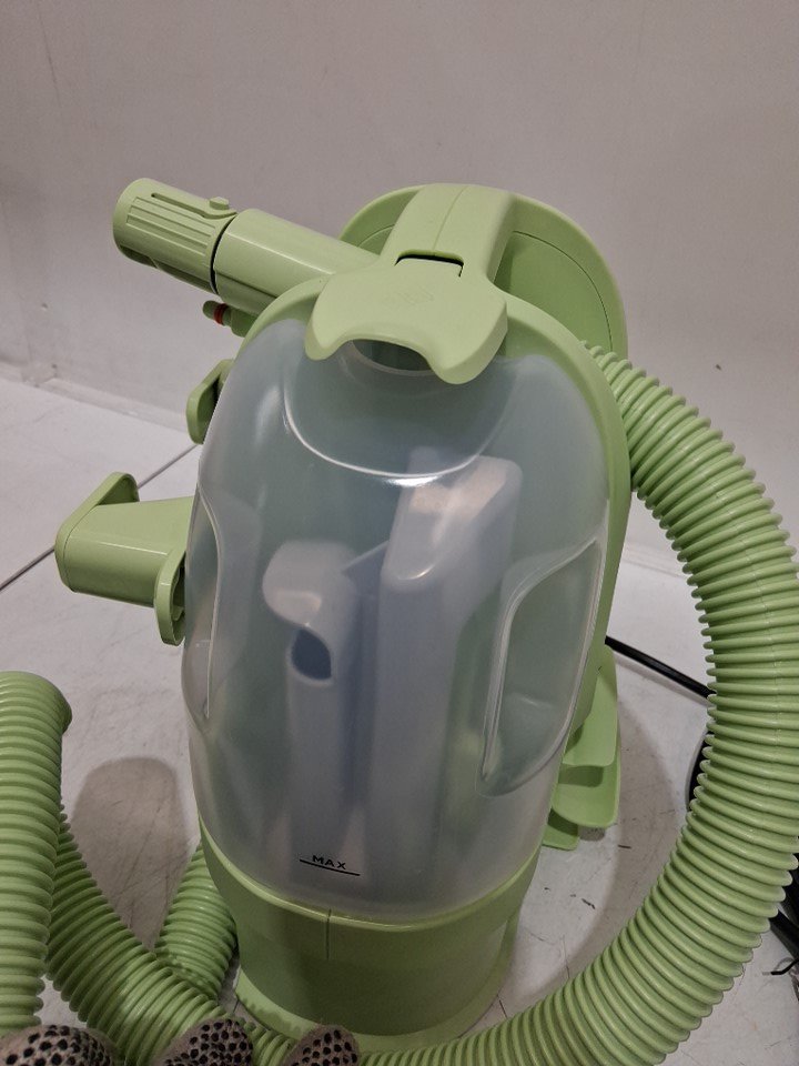 Item tested for power only. The cleaning solution bottle is open/used and around half filled. There are water/dirt marks in the tanks/nozzle/power cord and brush from previous use, see photos for reference.