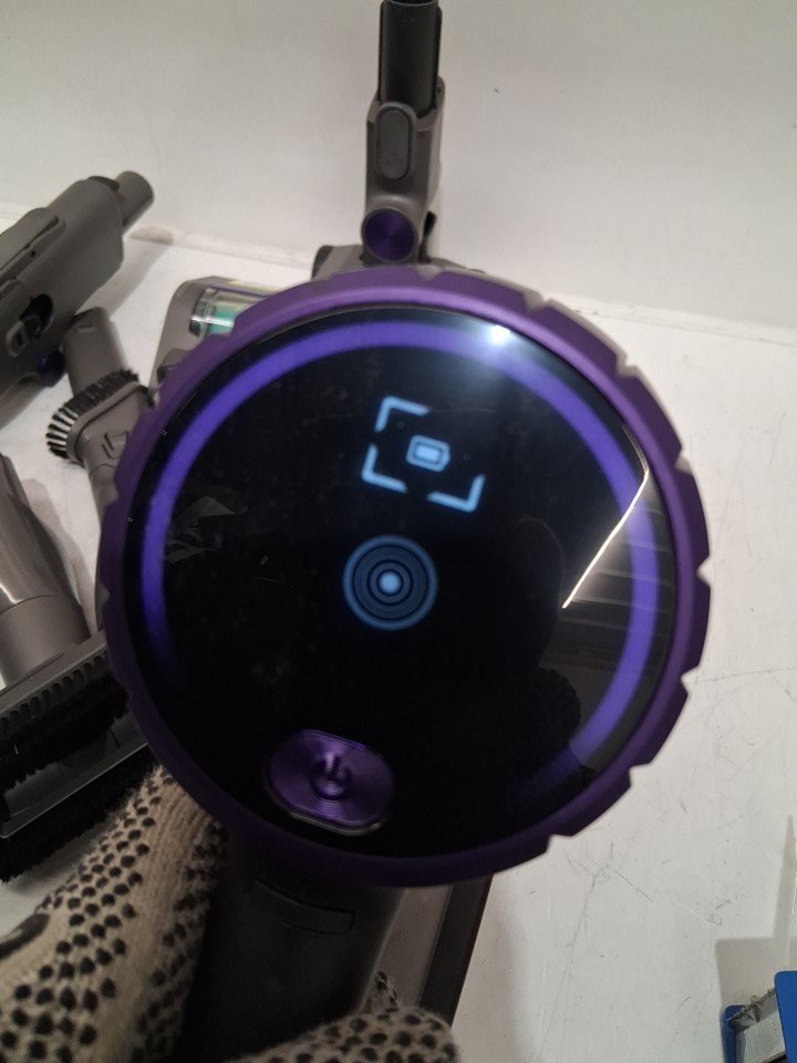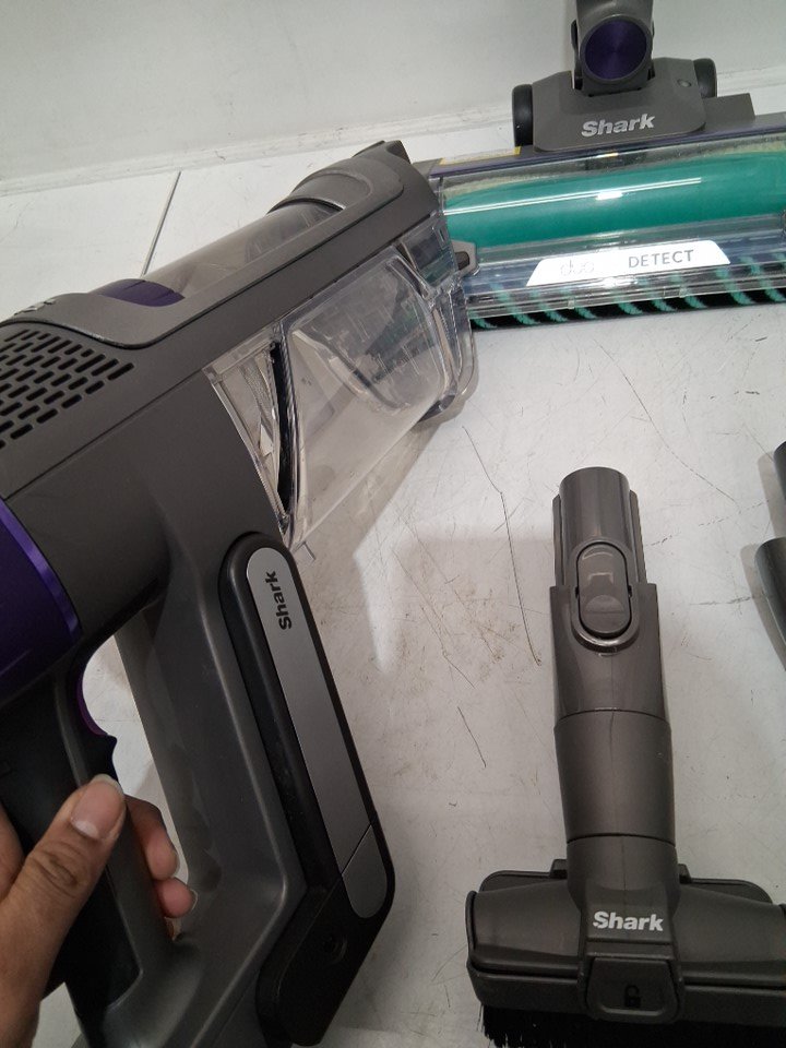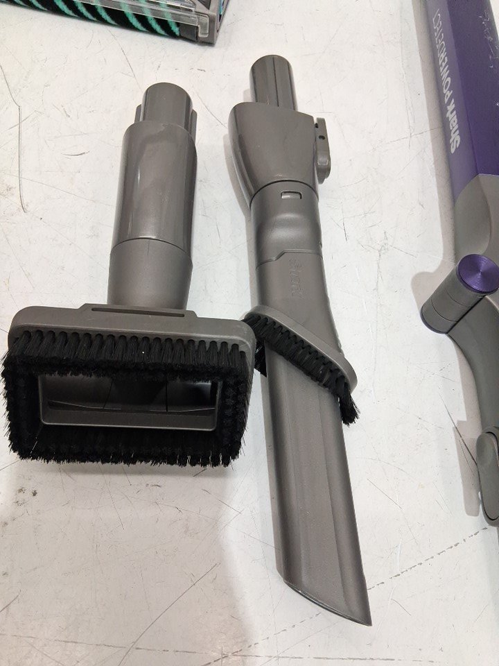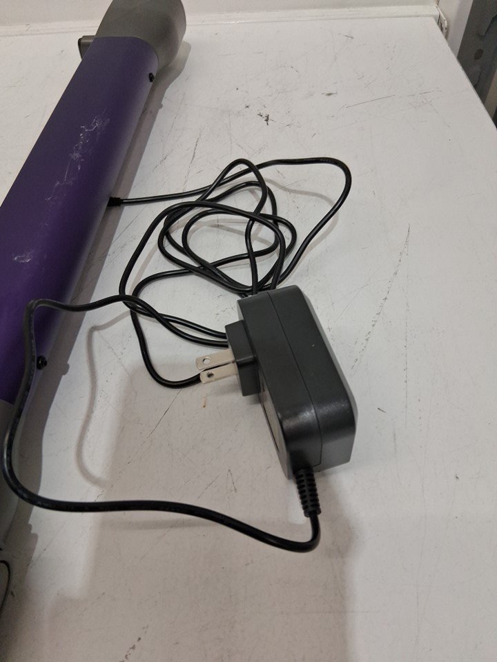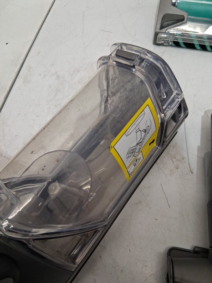 Tested for power & charging. The item has dirt and debris inside bin/attachments from previous use. There are also some scuffing/scratches on item.