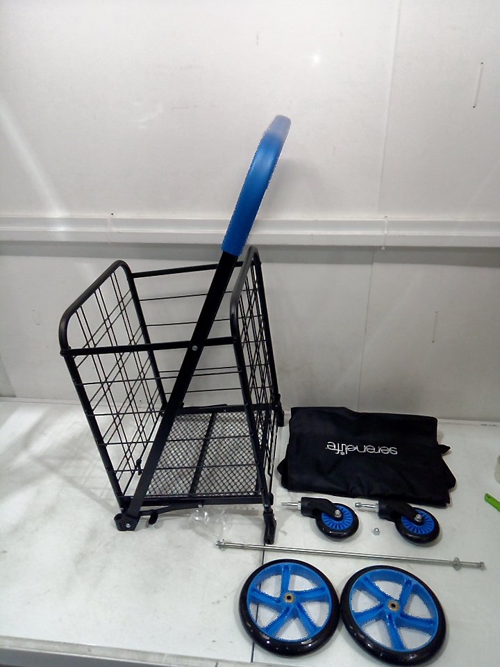 SereneLife Small Foldable Shopping Cart with Removable Liner - 37" x 21" x 18", 70lb capacity - blue/black - (model: slspcart55)