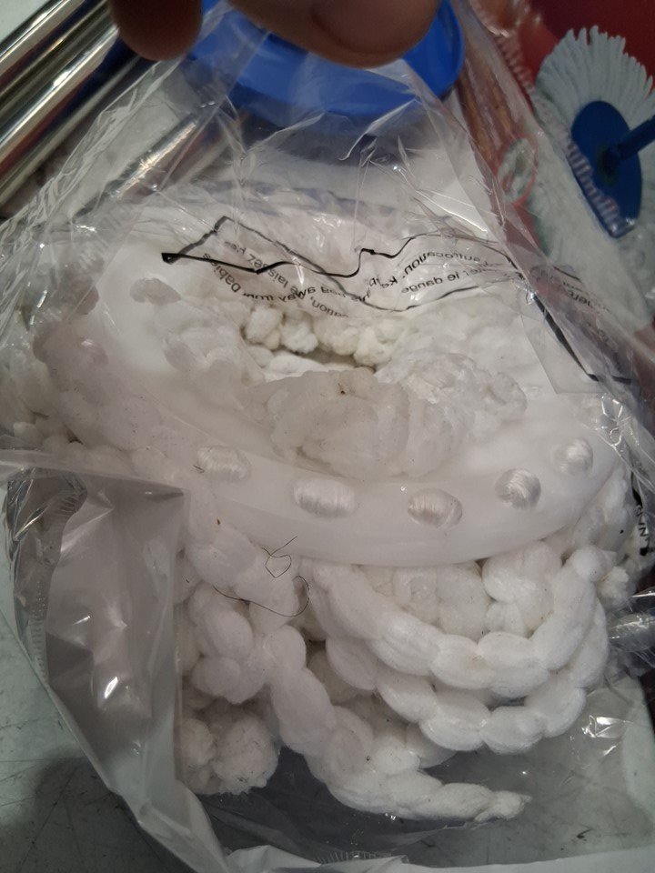 please note one of the mop heads is used and there are some markings on the mop handle from previous use. see photos.