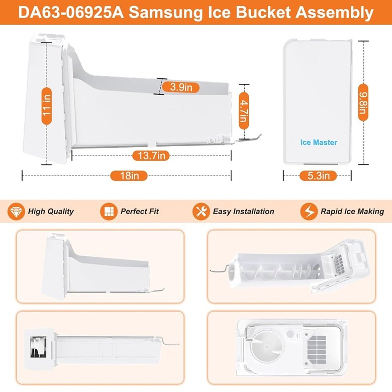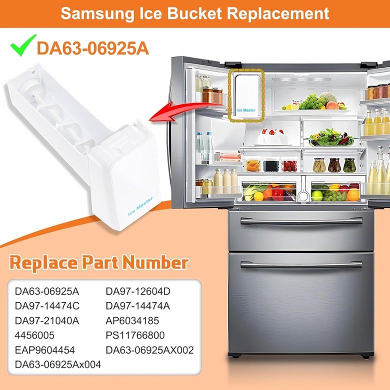 This Samsung DA63-06925A ice bin DA97-14474C DA97-14474A ice bucket assembly fit Samsung refrigerator parts models: RF28HMEDBSR/AA, RF263BEAESR/AA, RF265BEAESR/AA, RF26J7500SR/AA, RF263BEAESG/AA, RF263TEAESG/AA, RF263TEAESR/AA, RF263BEAEBC/AA, RF28HFEDBSR/AA, RF28JBEDBSG/AA, RF28HDEDBSR/AA, RF28K9380SR/AA, RF28K9070SR/AA, RF28HMEDBWW/AA, RF25HMEDBSR/AA, RF30KMEDBSG/AA ice maker ice tray, RF263BEAEBC/AA, RF263BEAES/AA, RF263BEAESP/AA, RF263BEAESR/AA, RF263BEAEWW/AA, RF263TEAEBC/AA, RF263TEAESG/AA, RF263TEAESR/AA, RF263TEAEWW/AA, RF26J7500BC/AA, RF26J7500SR/AA, RF26J7500WW/AA, RF26J7510SR/AA, RF28HDEDBSR/AA