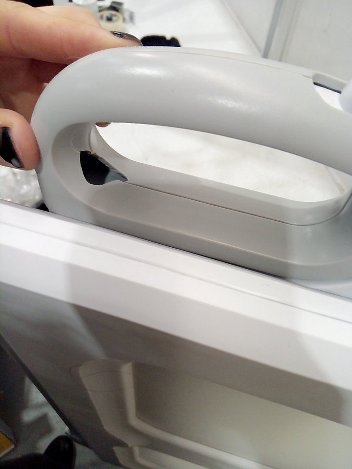 There is a small piece cracked out of the top handle. (SEE PHOTOS)