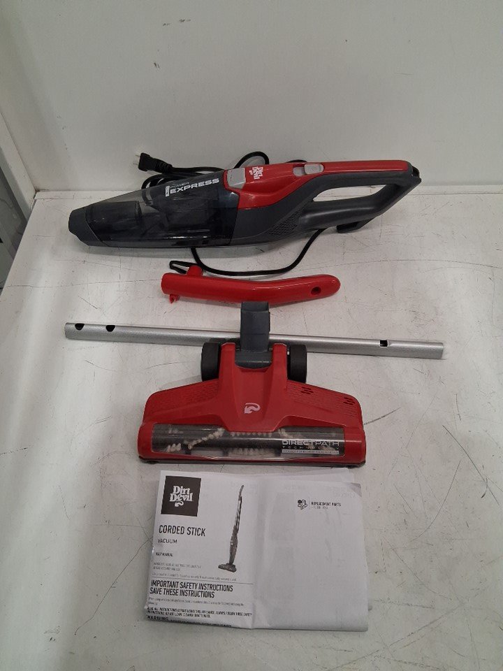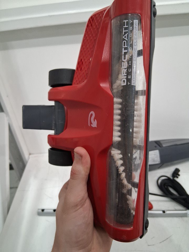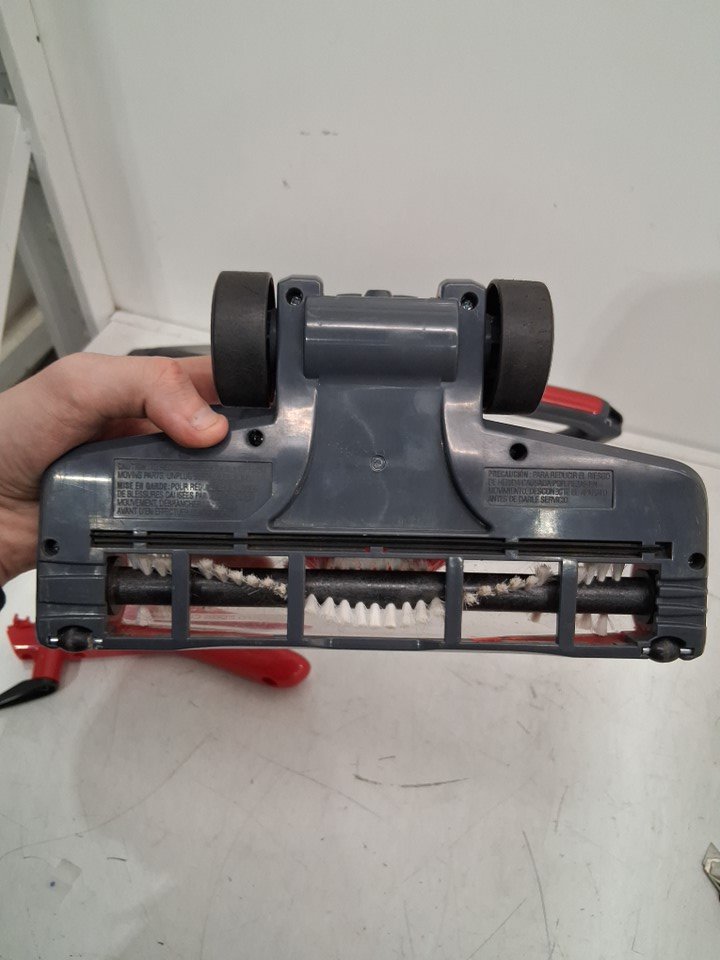 The bottom attachment piece of the vacuum has some hair/dirt/dust in it and shows signs of light use. There is also one scratch on the red handle, the filter looks new and may have been replaced. Tested for basic power.