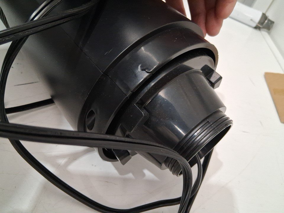 please note there are cracks at base, once base it attached it does not seem to affect function. tested for power. please see photos.