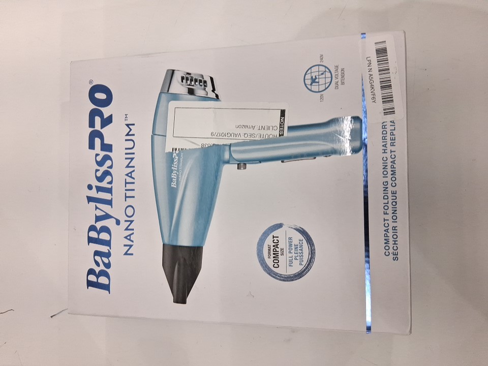 babylisspro nano titanium compact folding ionic hair dryer - 1200 watts - blue/silver (model: bnt910c)