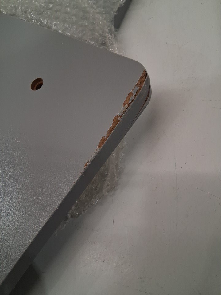product has some scuffs along the bottom and top of the side pieces (See photos)