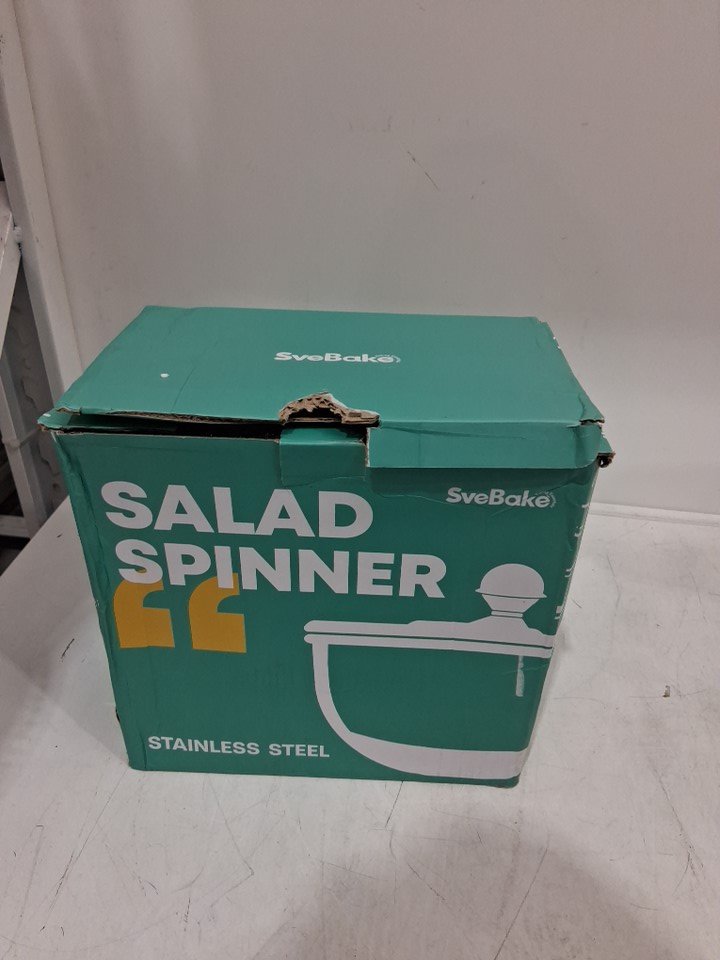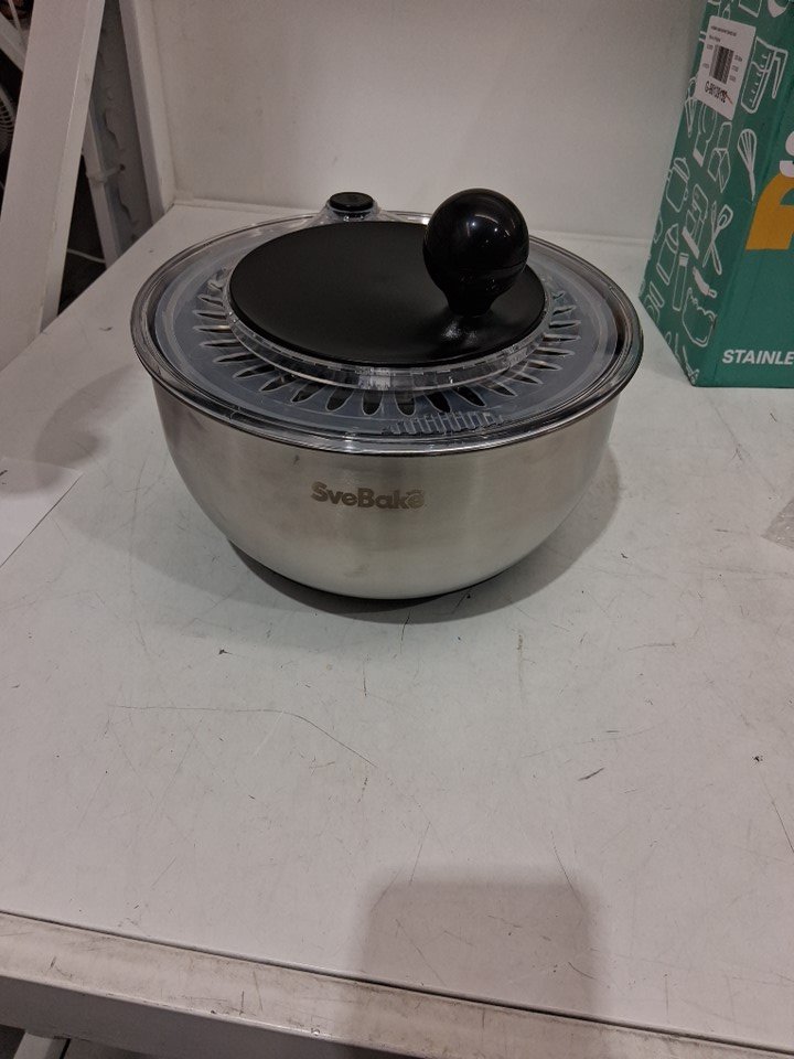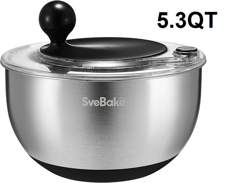 svebake stainless steel alad Spinner with Stop Button and lid, BPA-Free - 5.3qt - silver/black