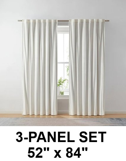 (3 panel set) Better Homes & Gardens Velvet Rod Pocket Blackout Window Curtains Panel, 52" x 84", ivory
