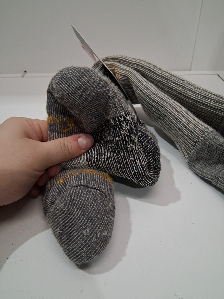 Socks have some light fraying on the outside