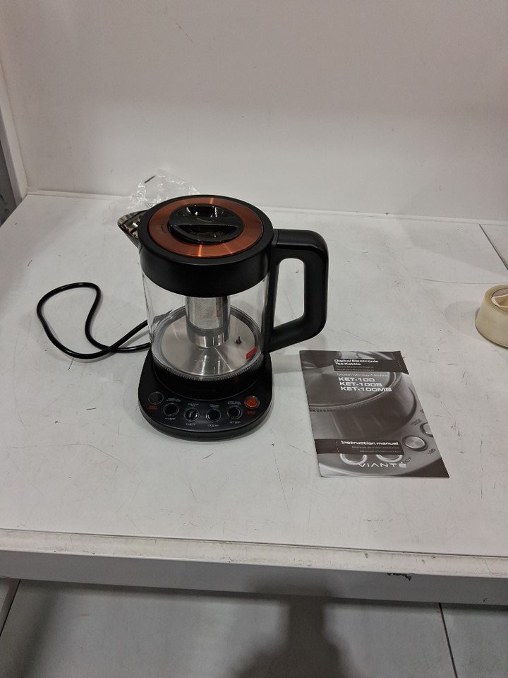 there is some light water residue on the base and glass portion of the kettle. tested for power.