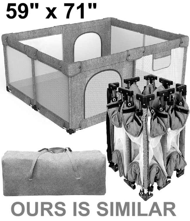 Portable Playpen for Babies and Toddlers Indoor & Outdoor Safety Travel Play Pen - 59" x 71" - grey
