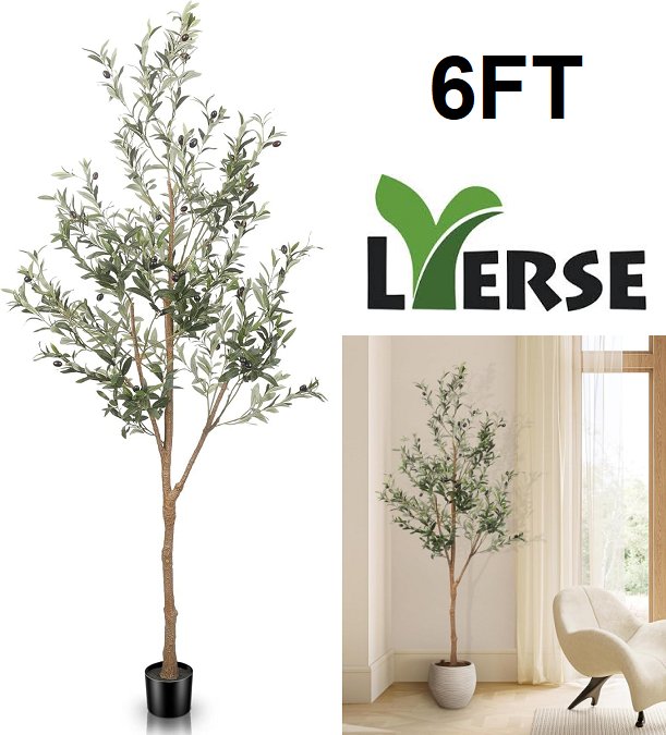 LYERSE ARTIFICIAL PLANTS DECORATIVE OLIVE TREE WITH POT - 6FT - green