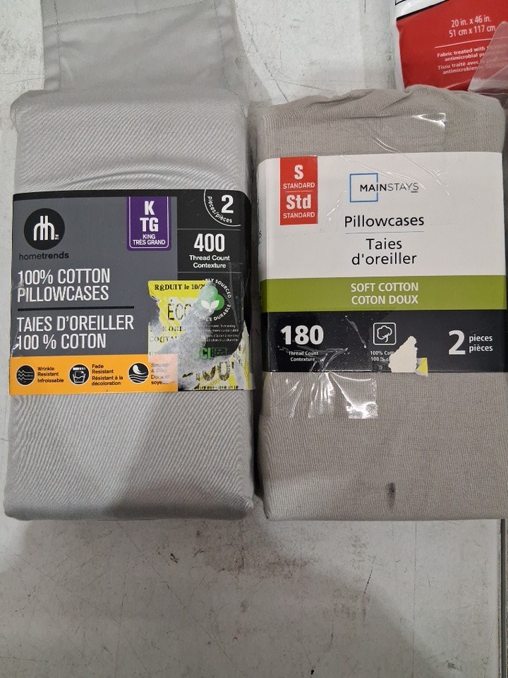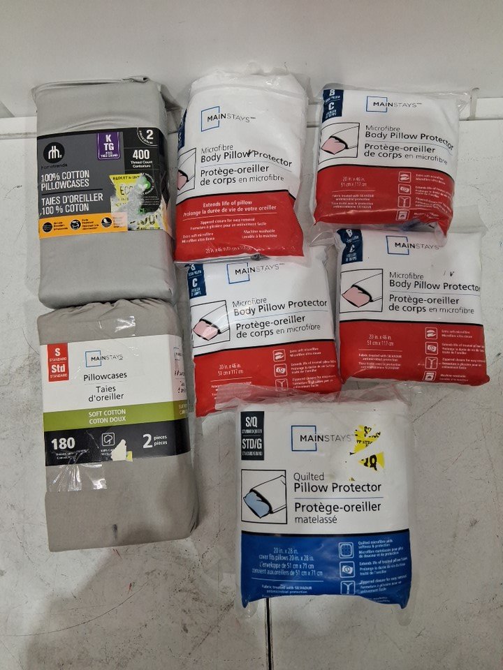 9 assorted mainstays hometrends pillow cases and protectors - assorted sizes and colours