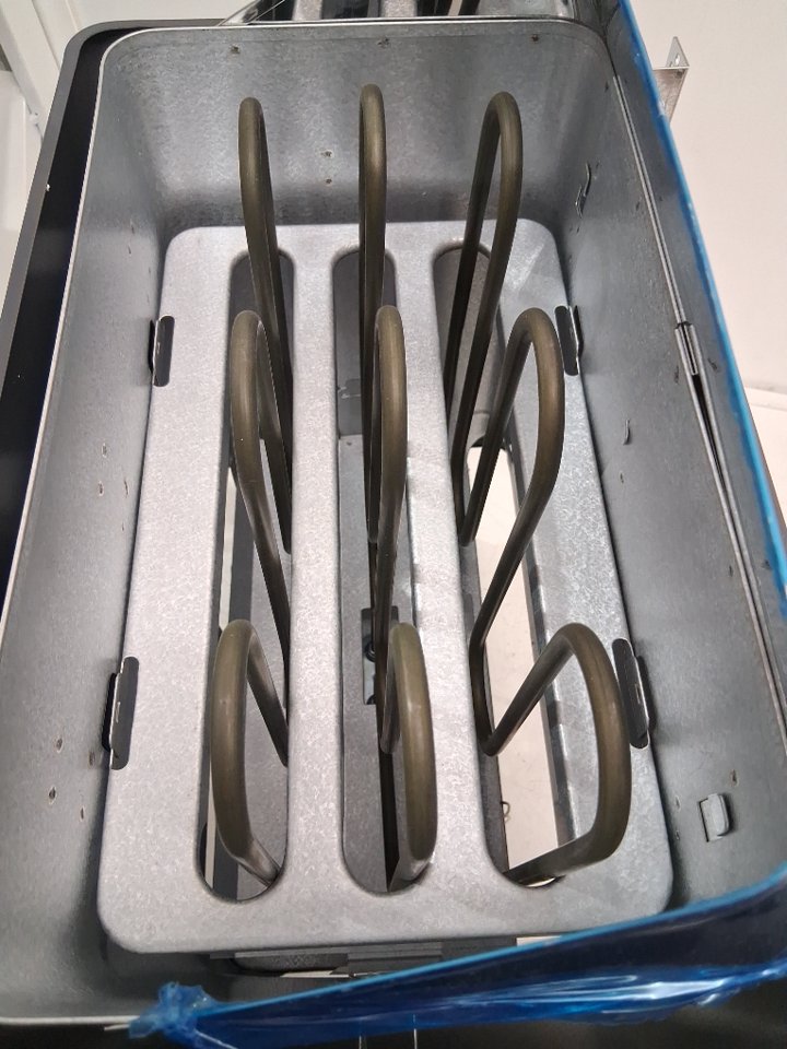 Please note the heater shows signs of previous use with scuffs and scratches along the outside and one of the wall mount brackets is attached while the other is not, see photos.