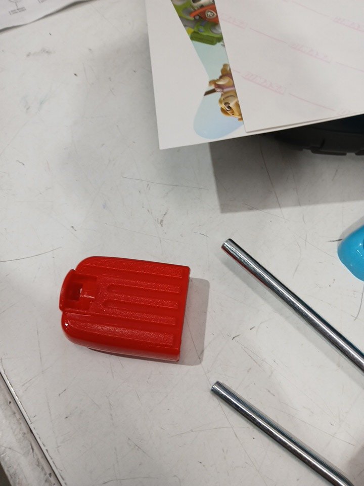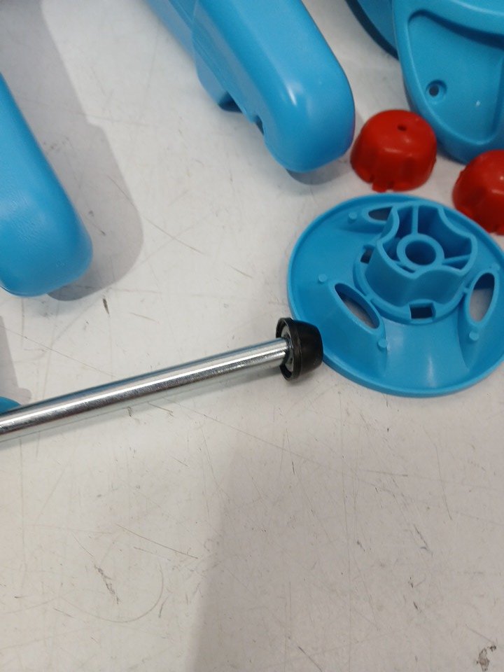 One of the pedals slips off easily and the other bar is missing a black cap. Tested for lights and sounds. Has some scuffing to the surface.