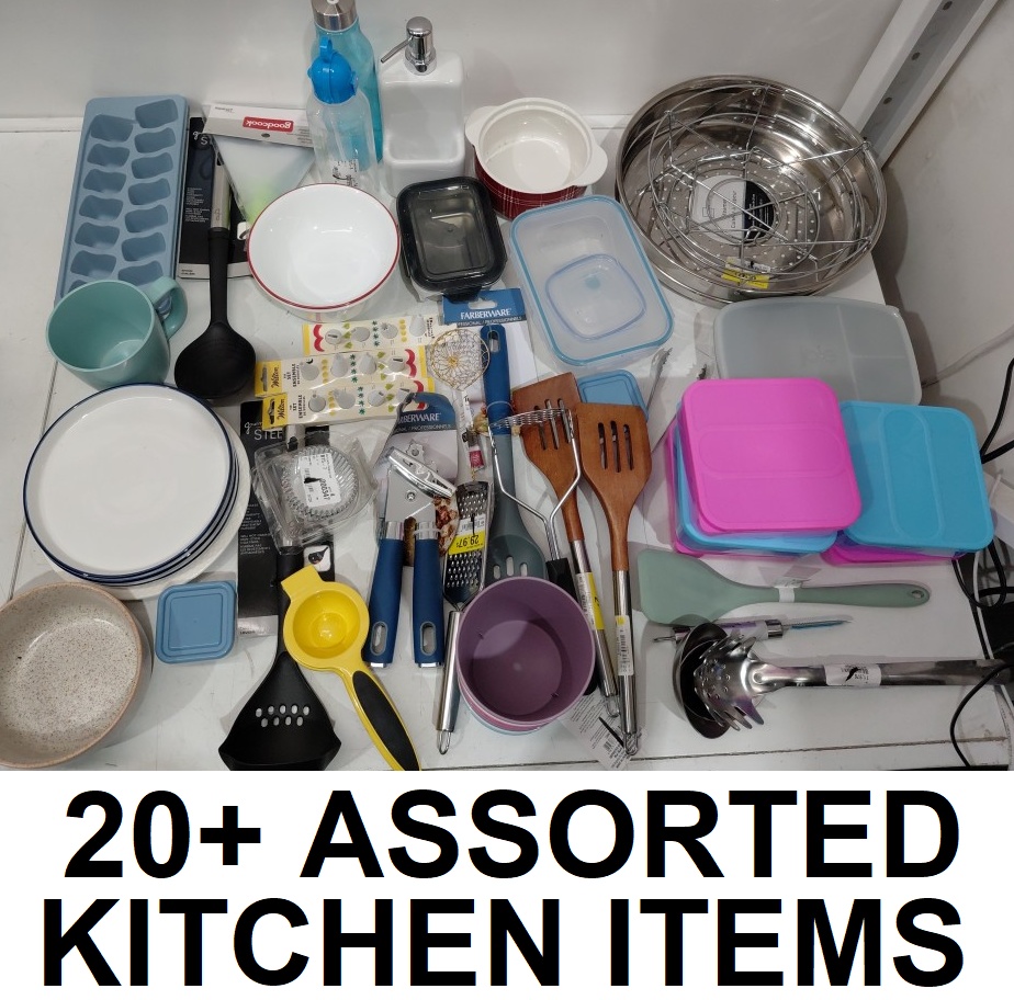 20+ assorted kitchen items - utensils, dishes, baking suppies & more