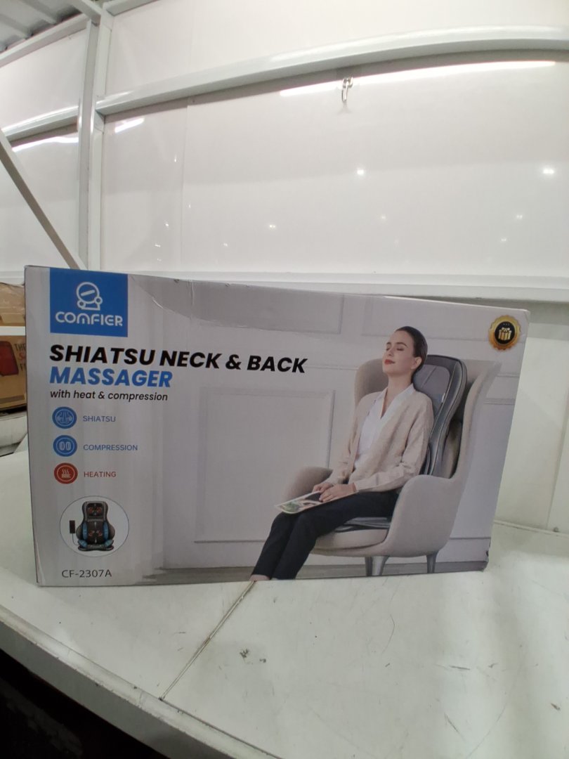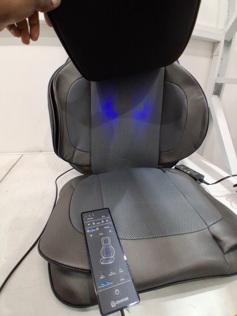 COMFIER NECK AND BACK MASSAGER SEAT with HEAT SHIATSU MASSAGE PADS PORTABLE WITH AIR With AIR COMPRESSION, ROLLING, KNEADING SETTINGS - grey (MODEL: CF-2307A)
