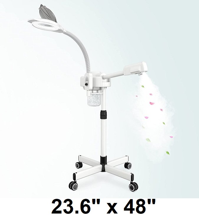 KINGSTEAM 2-in-1 Face Steamer with Strong Steam and 3X Magnifying Lamp, OZONE FACIAL STEAMER, 23.6" x 23.6" x 48" - WHITE (MODEL: 200H)