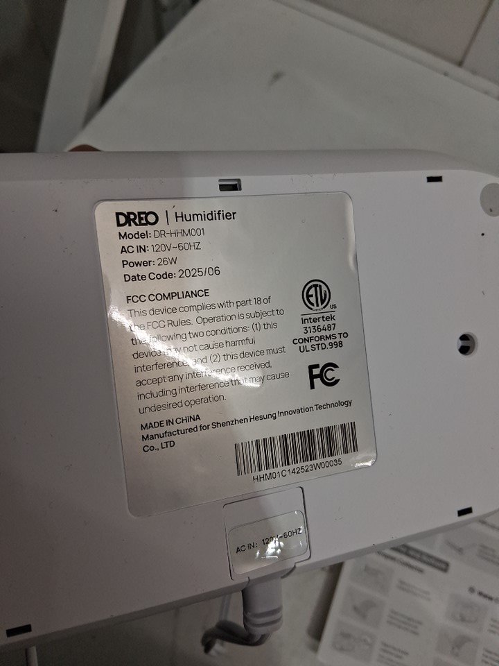 Dreo top fill supersized cool mist humidifier oil diffuser and night light - 4L - White (Model: DR-HHM001)