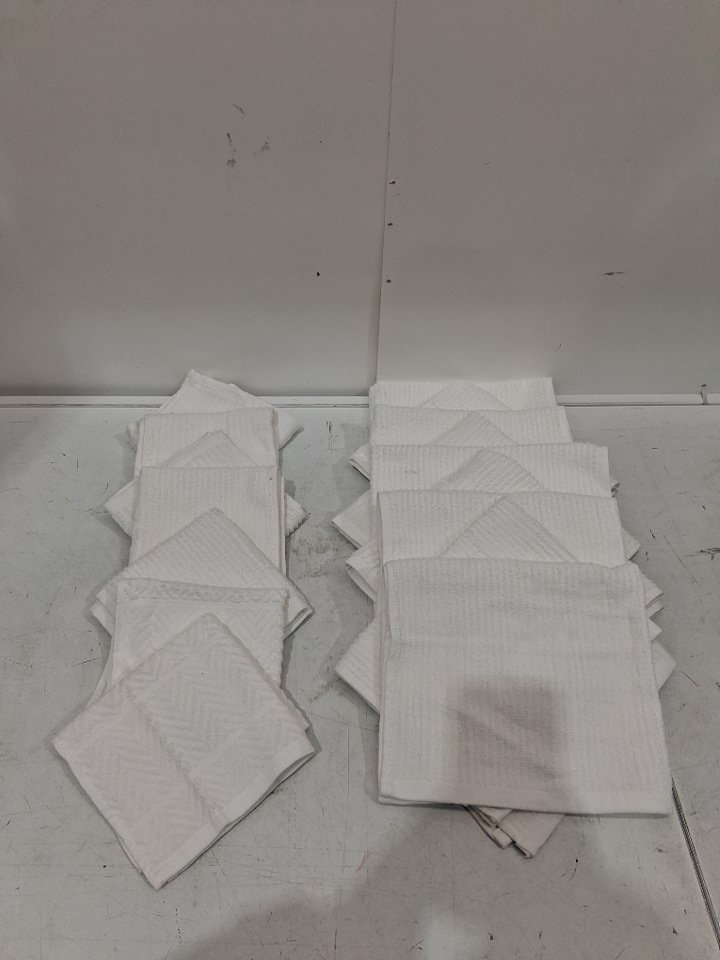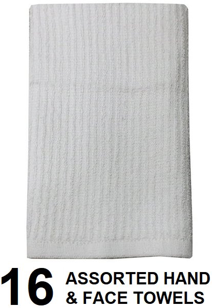 16 ASSORTED hand towels and face cloths - assorted sizes - white