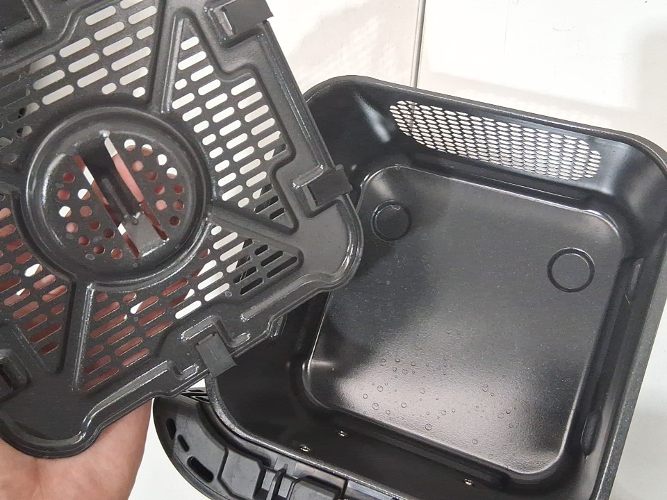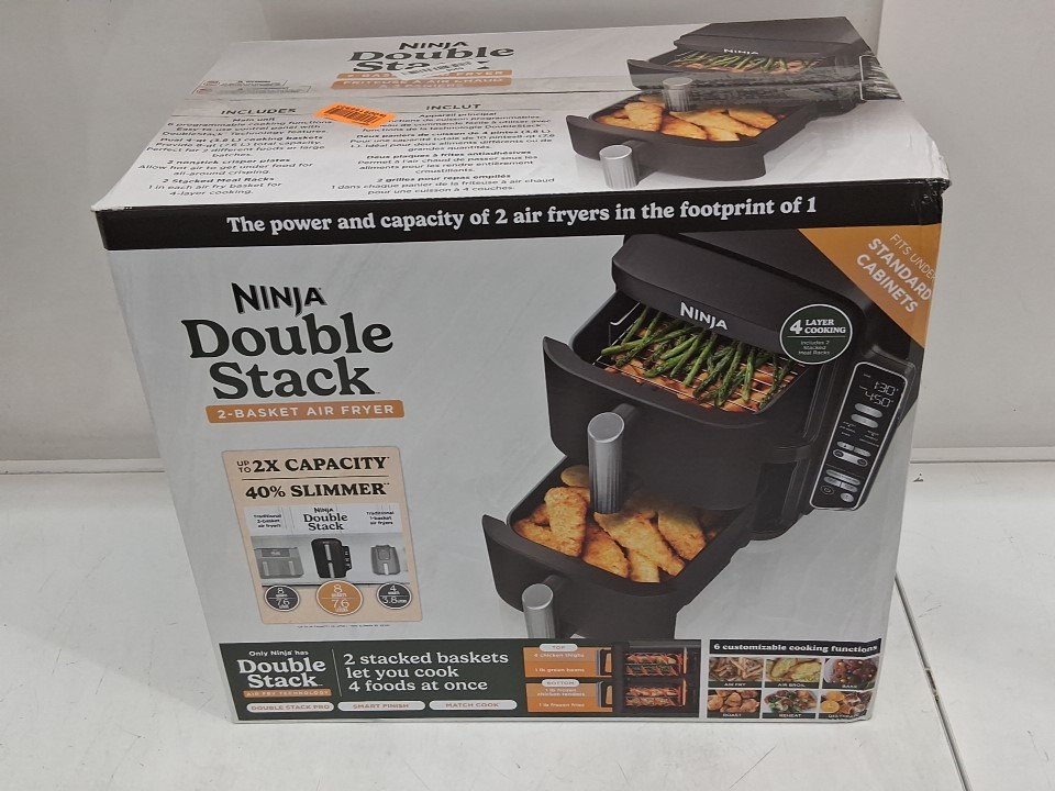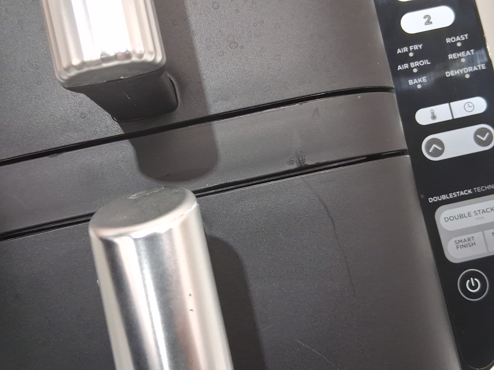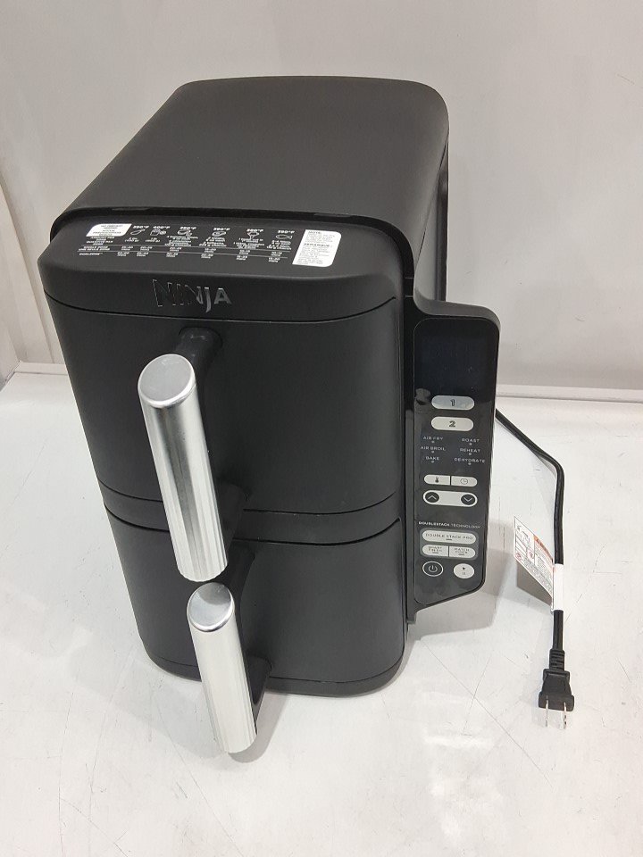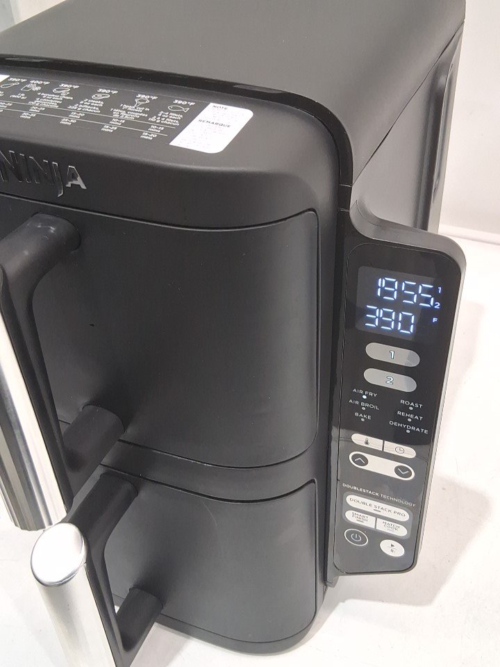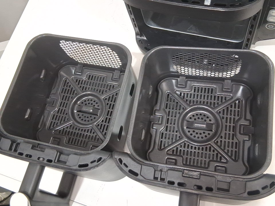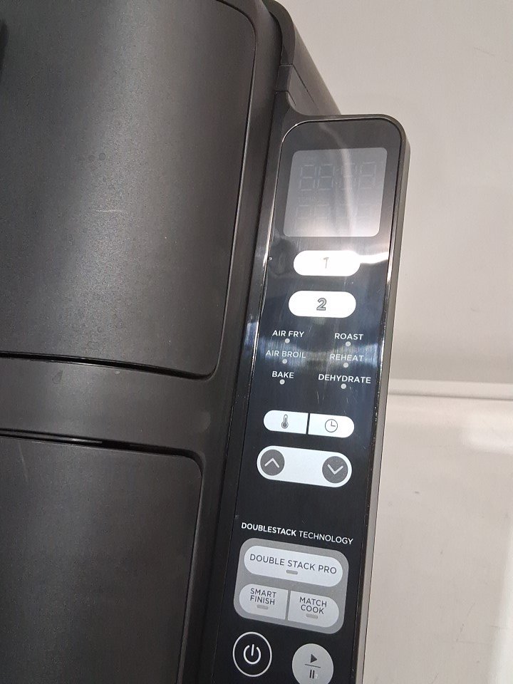 **Tested for power and heat.** Item has minor residue markings in the baskets, a few minor scuffs/scratches along the exterior from previous gentle use, see photos. Item's 'bake' and 'dehydrate' options do not light up when navigating the menu and may not function due to a control panel glitch, see photos.