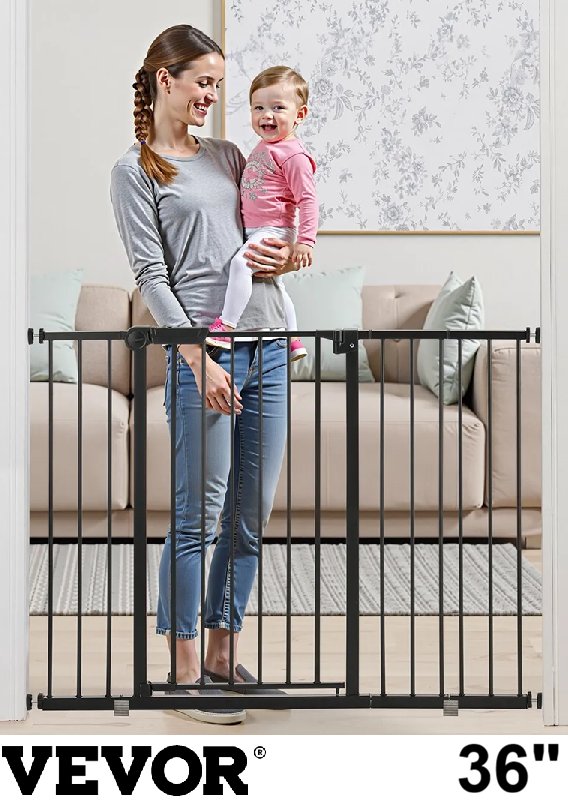 VEVOR Adjustable Baby and Pet Gate - 26"-48" x 36" - Black (Model: YFB1004B)