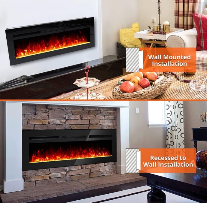HEARTLAND Recessed and Wall Mounted Electric Fireplace with Remote Control, Timer and Touch Screen - 9 FLAME SETTINGS - 750W/1500W - 36" x 17" - Black (MODEL: IF-1336)
