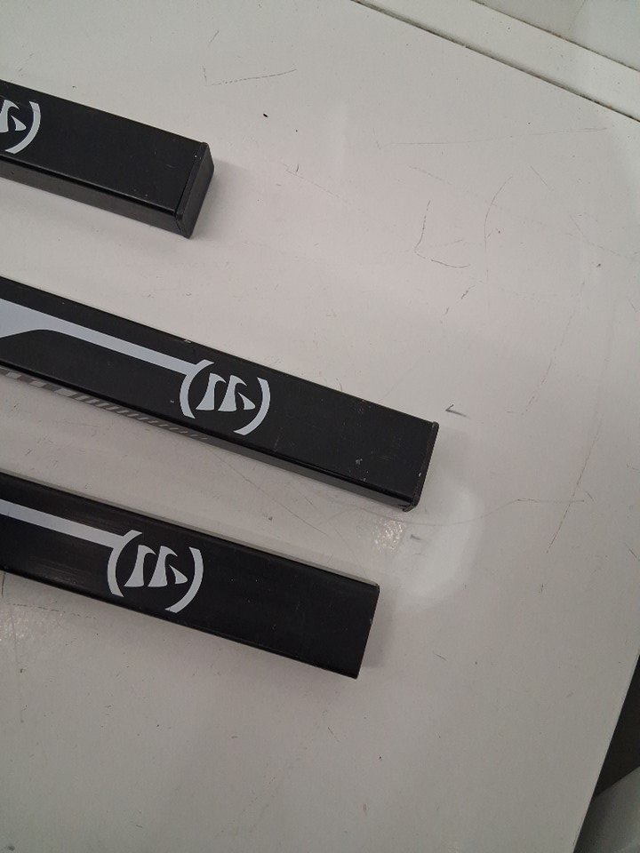 one end cap is missing from stick, and all three have scuff marks