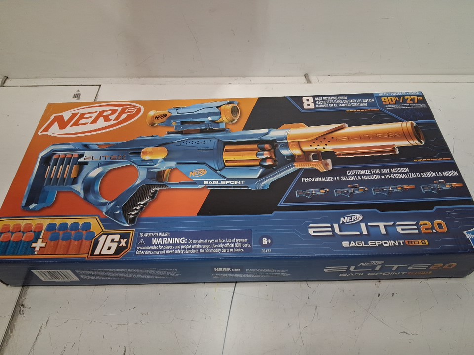 Nerf elite 2.0 eaglepoint rd-8 dart blaster & 8-dart drum with nerf scope - ages 8+ - orange/blue (model: ‎F0423)