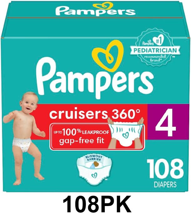 108pk Pampers Cruisers 360 degrees 100% Leakproof Fit diapers - Size 4 (23LB - 37LB)