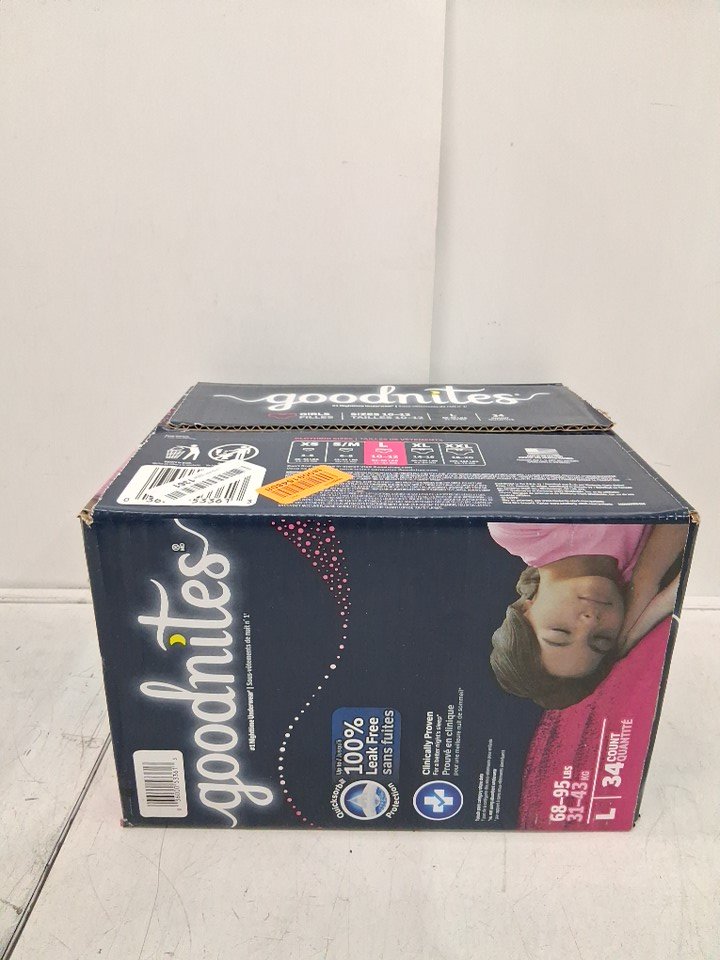 34PK GIRLS GOODNITES BEDWETTING NIGHTTIME UNDERWEAR - LARGE - FITS SIZES 10-12 - 69-95LBS