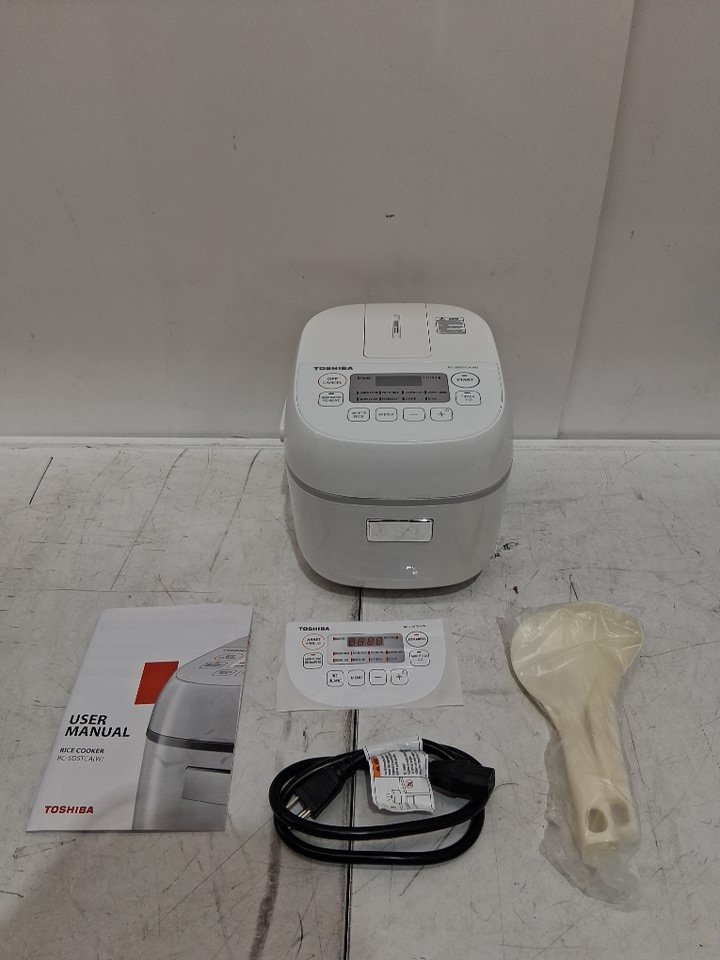 toshiba 8-function non-stick rice cooker - 3 cup uncooked - white (model: rc-5dstca)