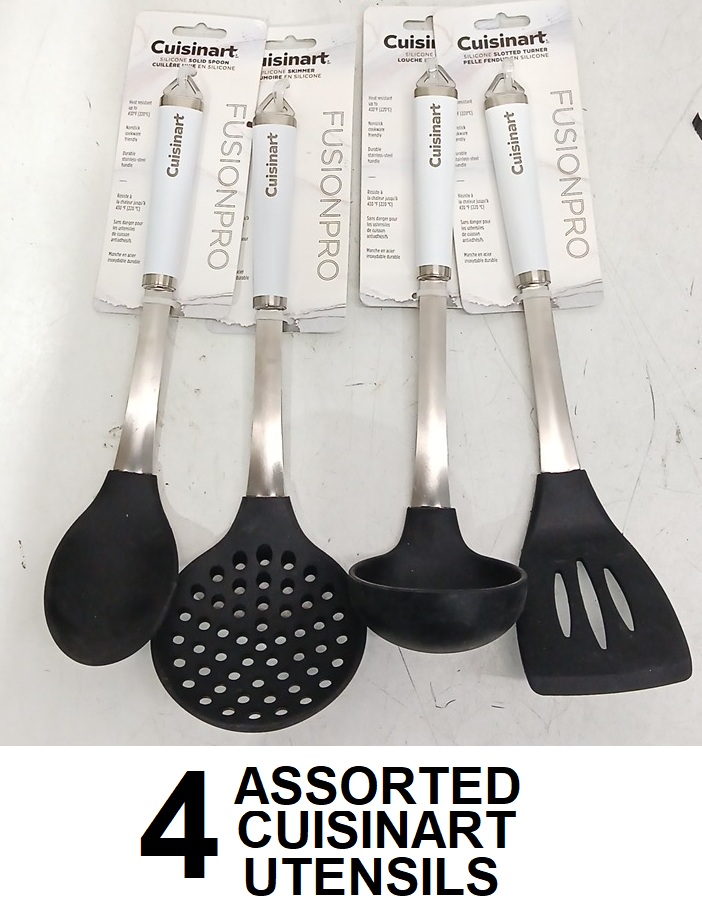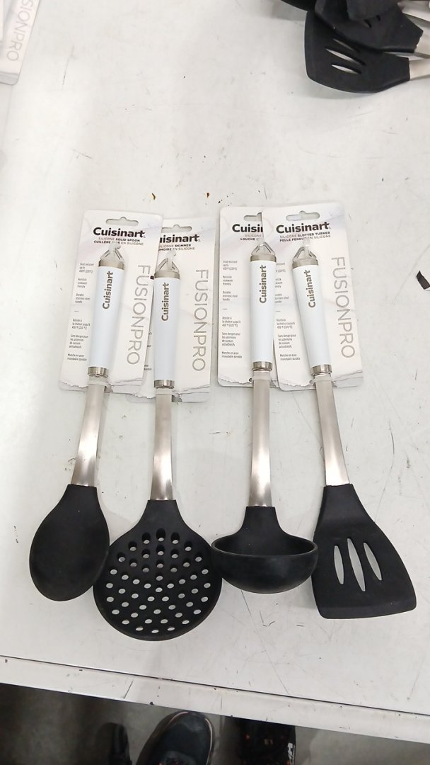 4 assorted Cuisinart fusion pro silicone kitchen utensils - black/stainless steel/white
