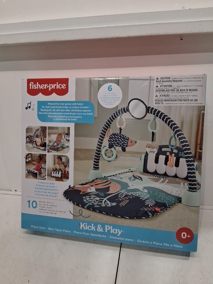 FISHER-PRICE kick and play piano gym playmat with musical and sensory toys for healthy development - 4-9 months - navy fawn (model: hkx37)