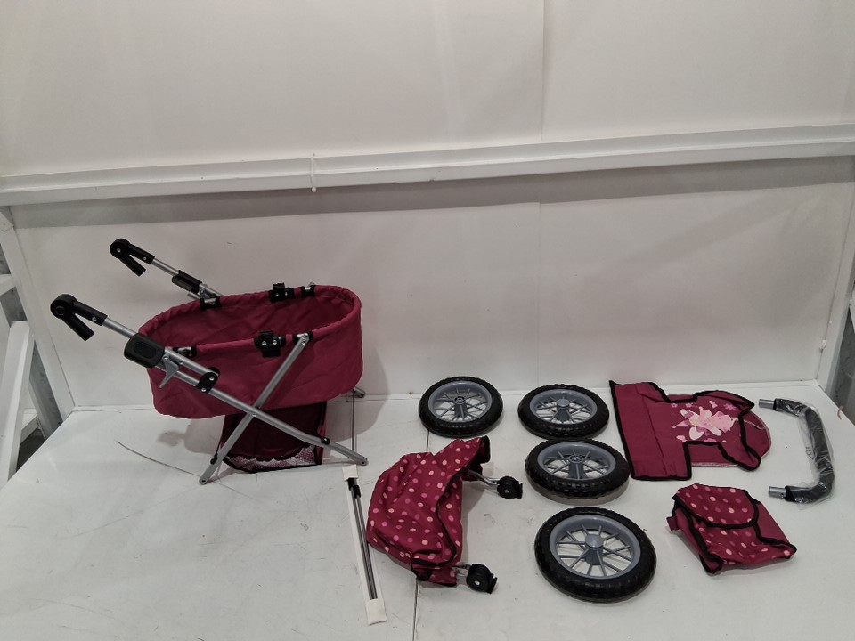 Bayer Design ADJUSTABLE HANDLE Baby Stroller for Dolls with Bag - Bordeaux/ pink dot (model: 13067AA)