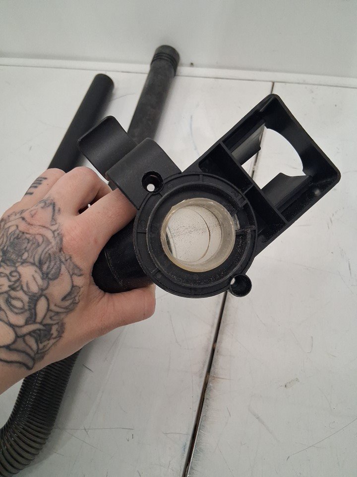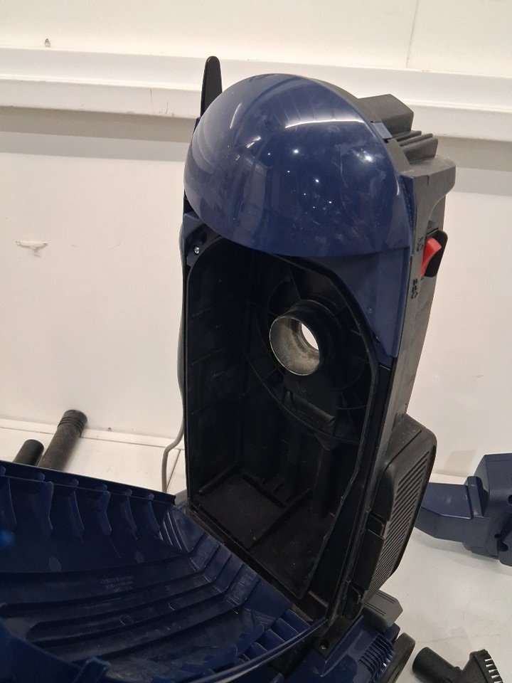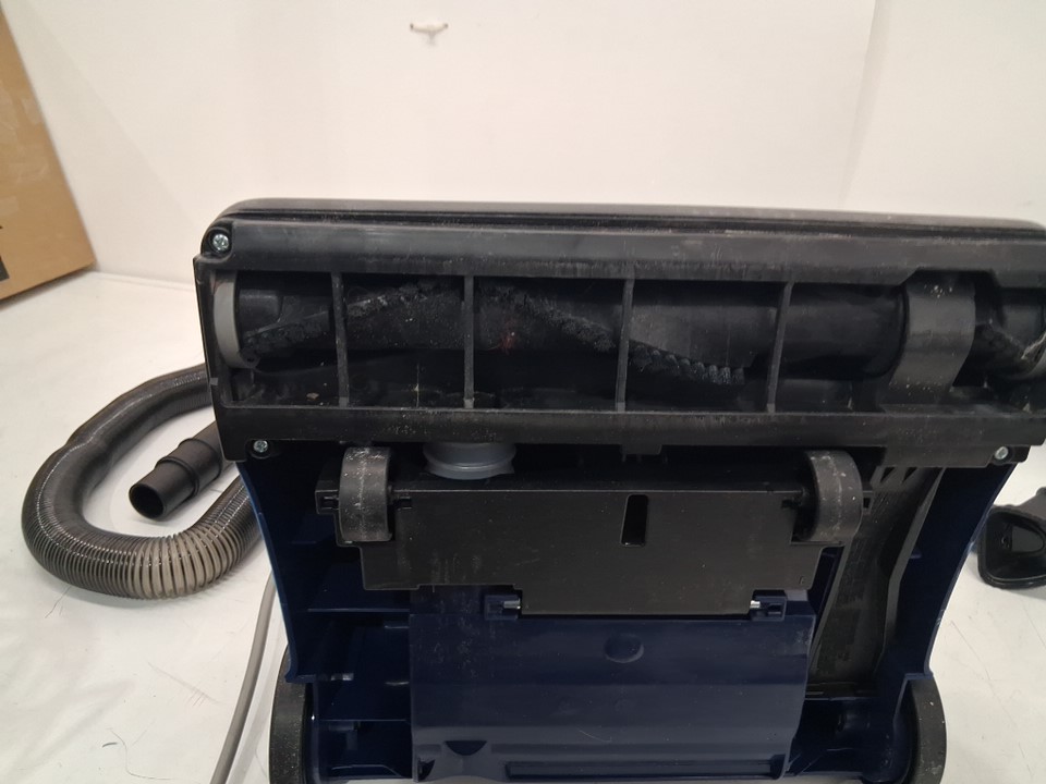 vacuum has visible dust and debris in bristles and tubing and scuff marks on it. Has been tested for power (no indicator light)