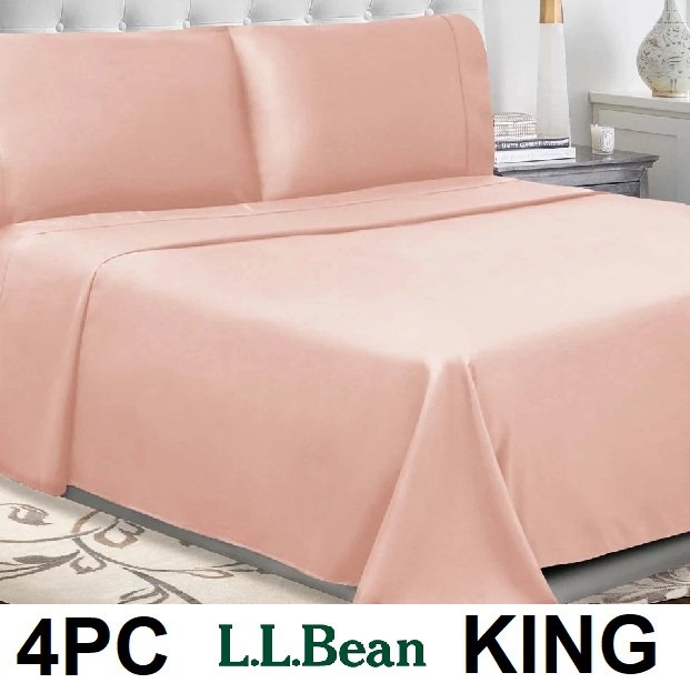 4pc l.l.bean 280-Thread-Count Pima Cotton Percale 15" deep pocket Sheet Set - king - pink clay (model:302644)